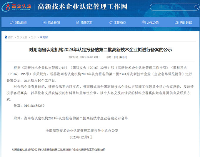 2023年12月,湖南省認(rèn)定機(jī)構(gòu)2023年認(rèn)定報備的第二批高新技術(shù)企業(yè)備案名單公示,湖南鏈城數(shù)據(jù)服務(wù)有限公司赫然在列,公司申報國家級高新技術(shù)企業(yè)獲批通過。