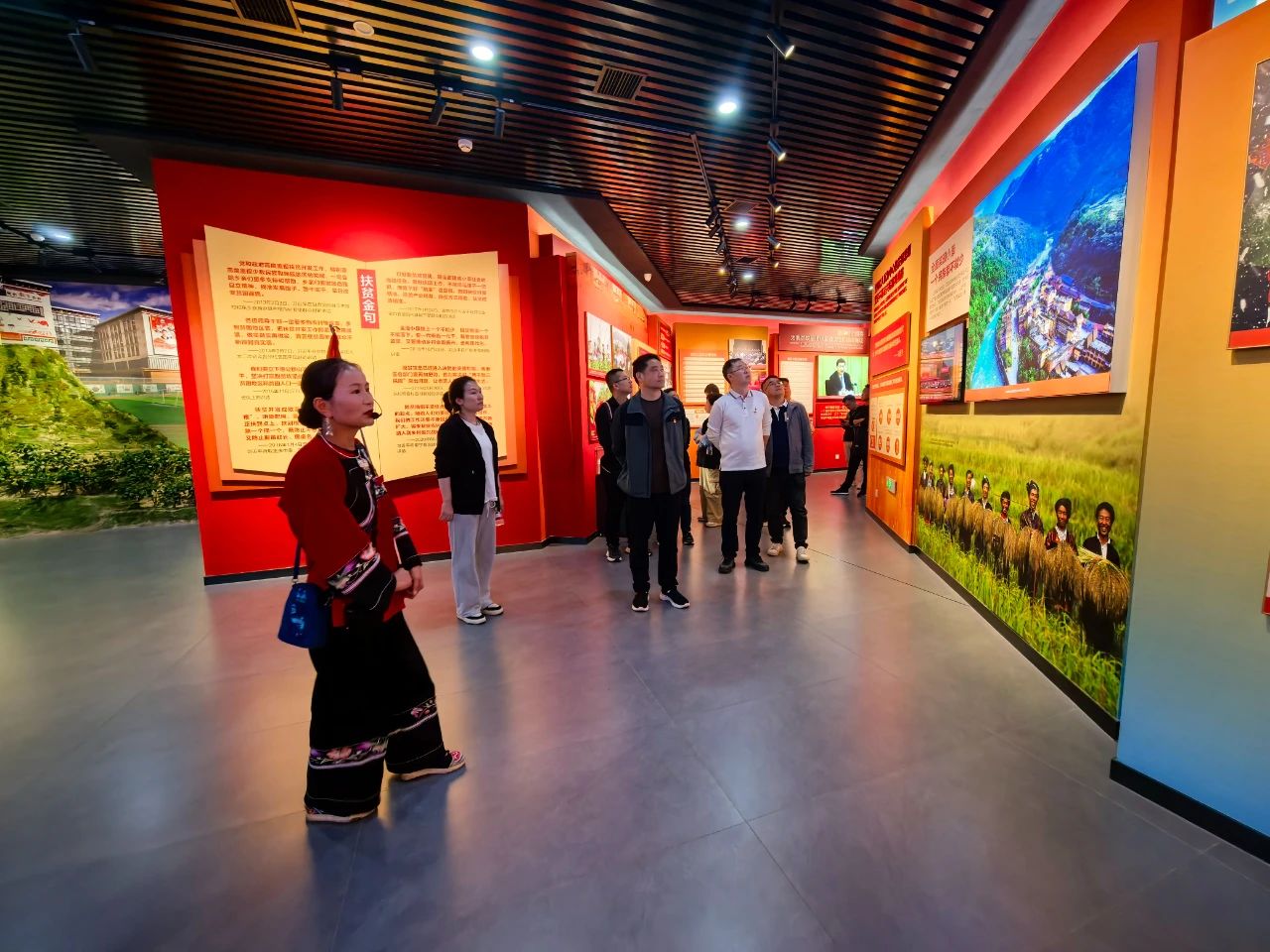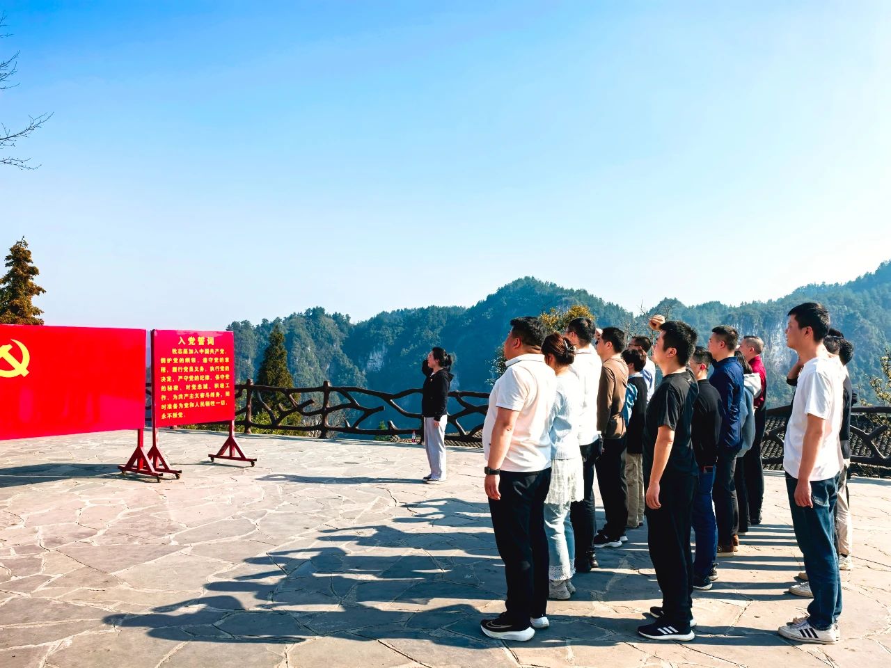 隨后,大家在講解員的帶領(lǐng)下,參觀了精準(zhǔn)扶貧主題陳列館,重走習(xí)近平總書記考察路線,還參觀了苗繡非遺扶貧工坊等標(biāo)志性場(chǎng)所,親身感受了十八洞村在黨的關(guān)懷下,從貧窮落后小山村到脫貧攻堅(jiān)樣板村的美麗蛻變。最后,全體黨員在精準(zhǔn)扶貧廣場(chǎng)重溫入黨誓詞,鏗鏘有力的誓言在美麗的山谷回蕩,傳遞著全體黨員們“聽(tīng)黨話、跟黨走”的堅(jiān)定信念。
